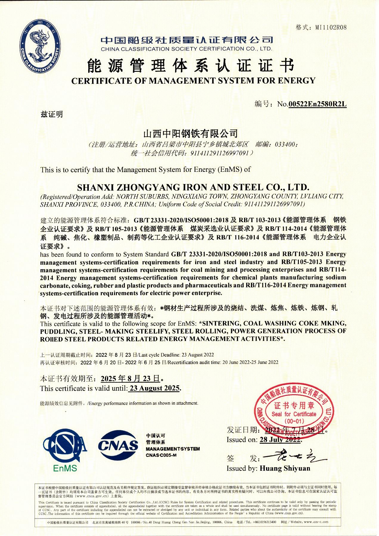 職業(yè)健康安全管理體系認(rèn)證證書(shū)(煤炭洗選)