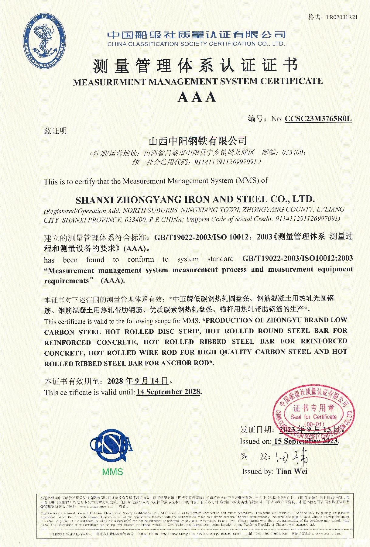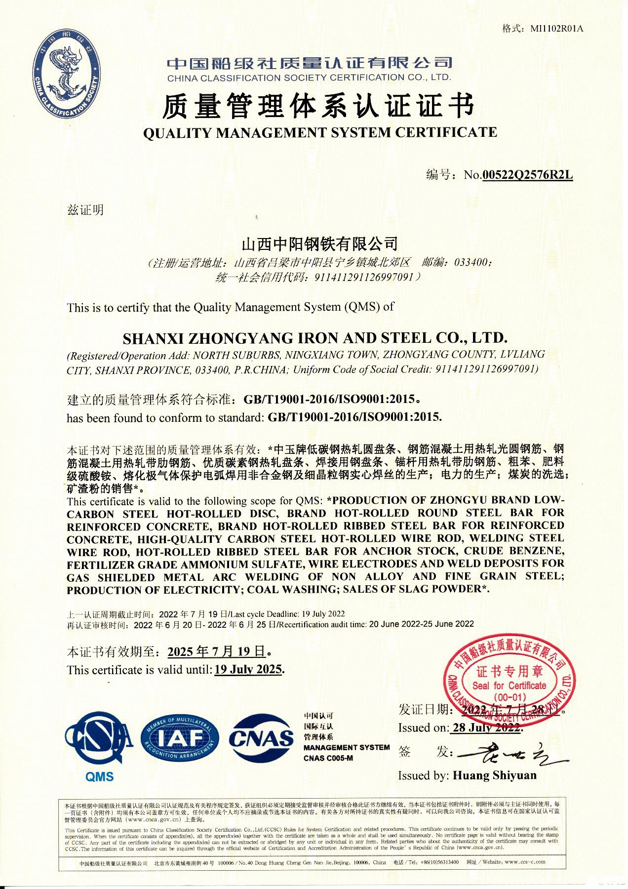 質(zhì)量管理體系認(rèn)證證書(shū)