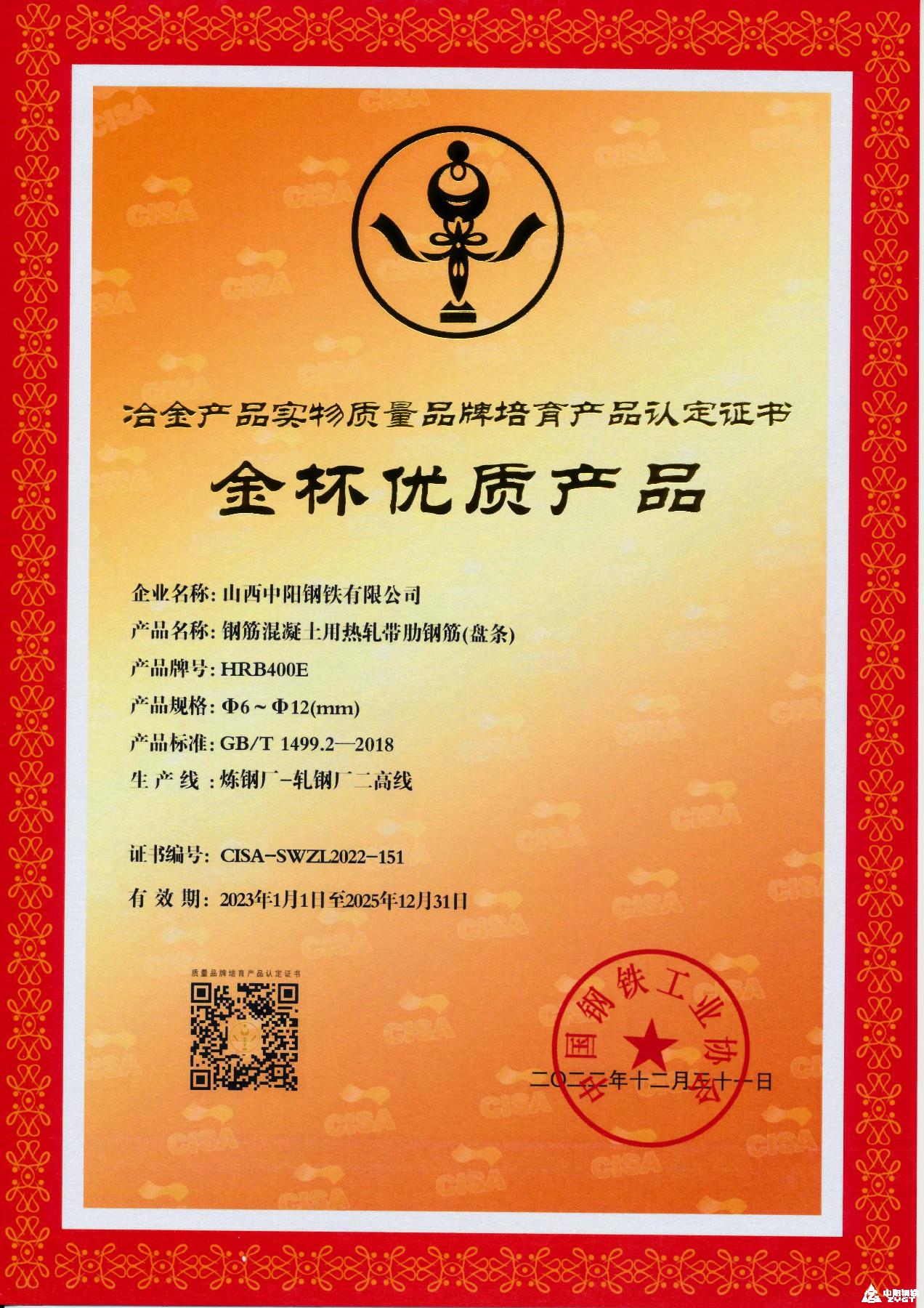 金杯優(yōu)質(zhì)產(chǎn)品-鋼筋混凝土用熱軋帶肋鋼筋(盤(pán)條)